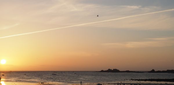 Santec ist eine kleine Gemeinde im Finistère, dem nord-westlichen Teil der Bretagne. Der Blick geht hier in Richtung Großbritannien, das allerdings noch etwa 200 Kilometer entfernt ist. Wenn wir’s sehen könnten, würden wir auf Plymouth schauen. Im benachbarten Roscoff fahren täglich Fähren nach Großbritannien. Früher sind die Bauern von hier aus nach England aufgebrochen, um ihre Produkte zu verkaufen. Bekannt ist die Zwiebel aus Roscoff, die besonders süß ist. Artischocken und Blumenkohl sind weitere bekannte Produkte.